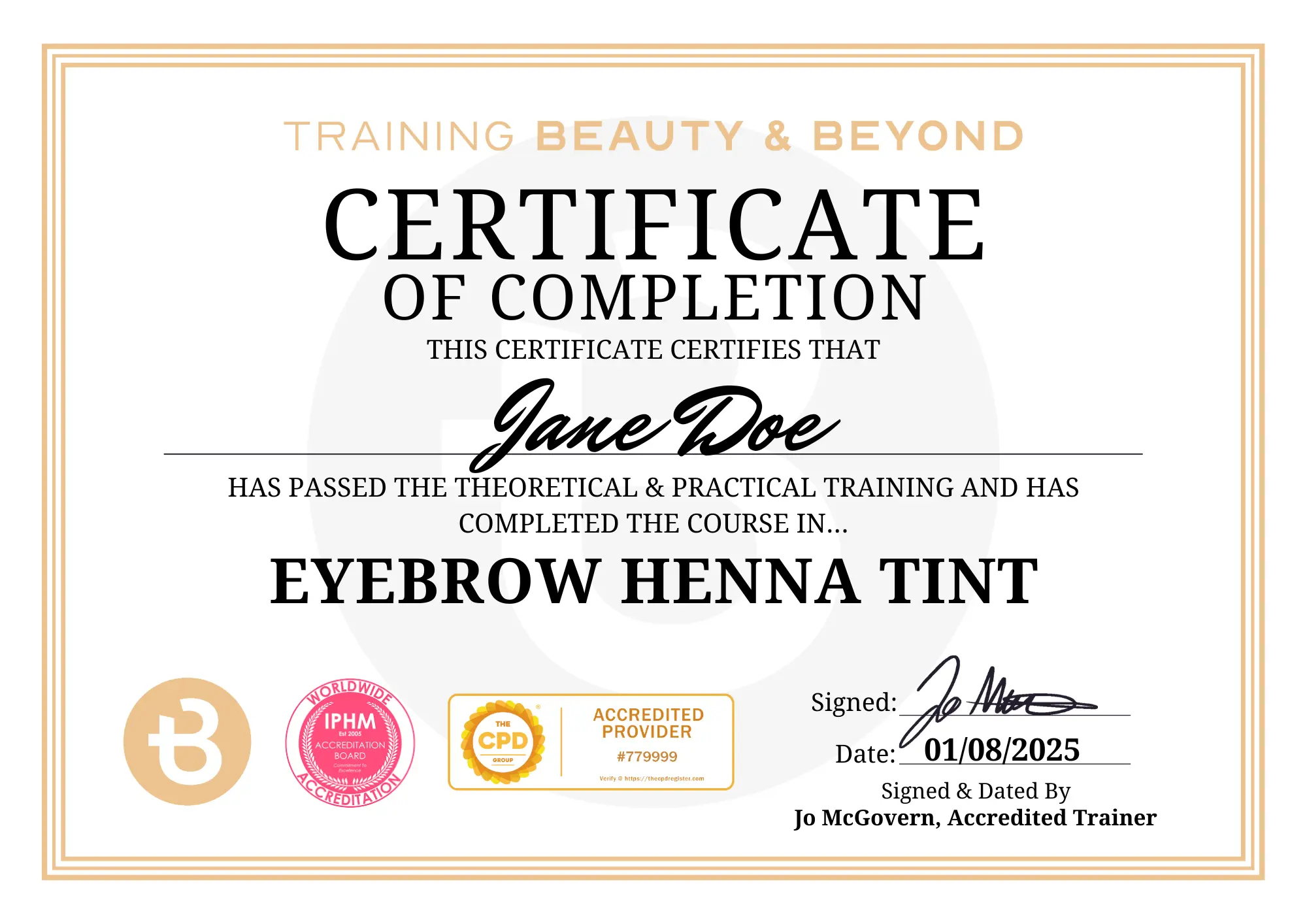You’ll earn an accredited certification through IPHM Beauty and The CPD Group in Eyebrow Henna Tint once all graded assignments are successfully completed.