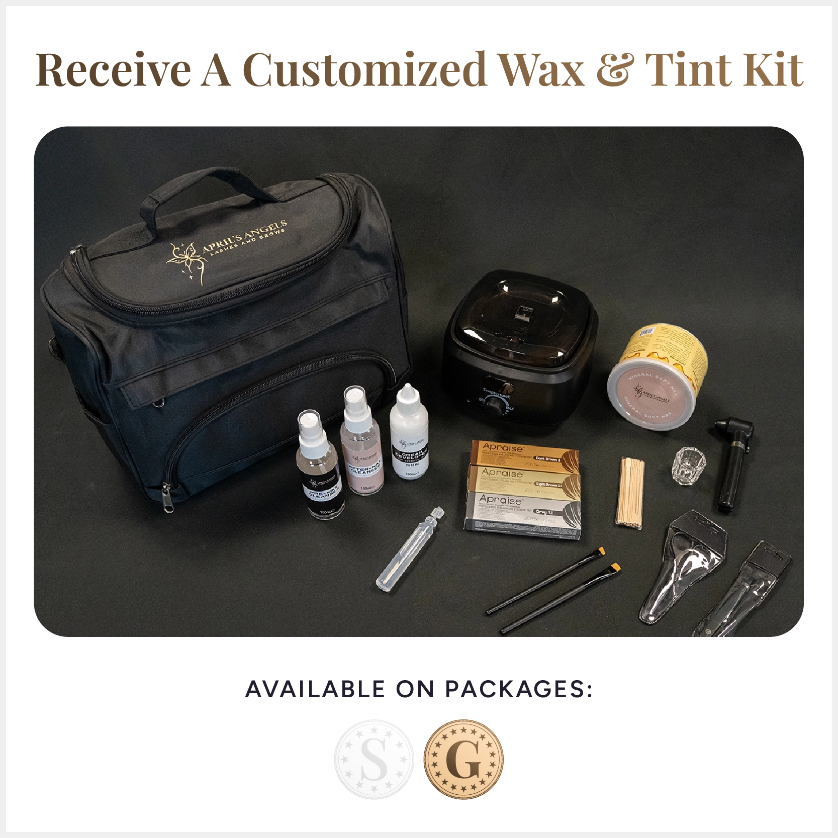 The Bronze package does not include a customized Eyebrow Wax & Tint kit. This is a feature of the Gold package only.