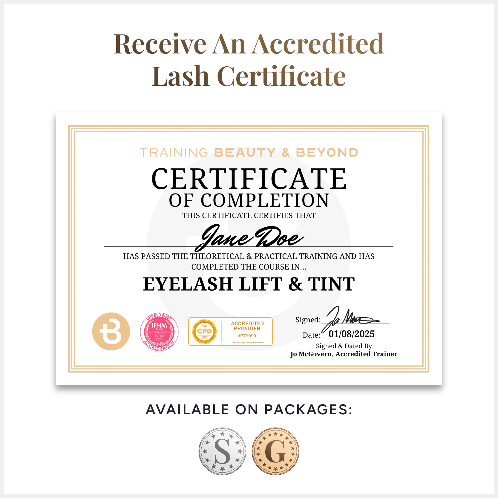 You’ll receive a Certificate of Completion for the Eyelash Lift & Tint Course once you finish.