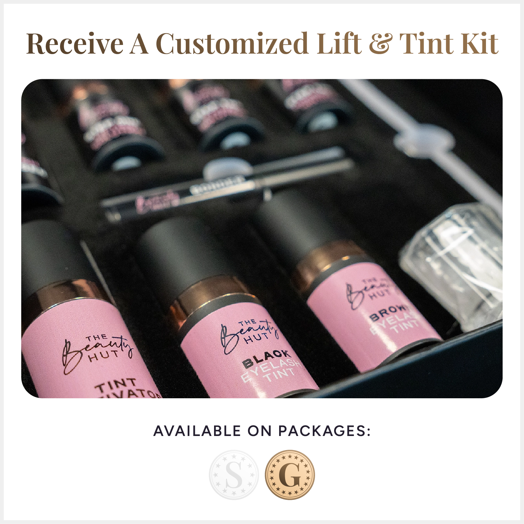 The Silver package does not include a customized eyelash lift & tint kit. This is a feature of the Gold package only.